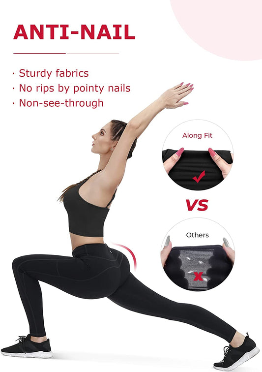 Anti-Nail Leggings for Women, Non-See-Through Yoga Pants with Phone Pockets, Tummy Control Full-L...